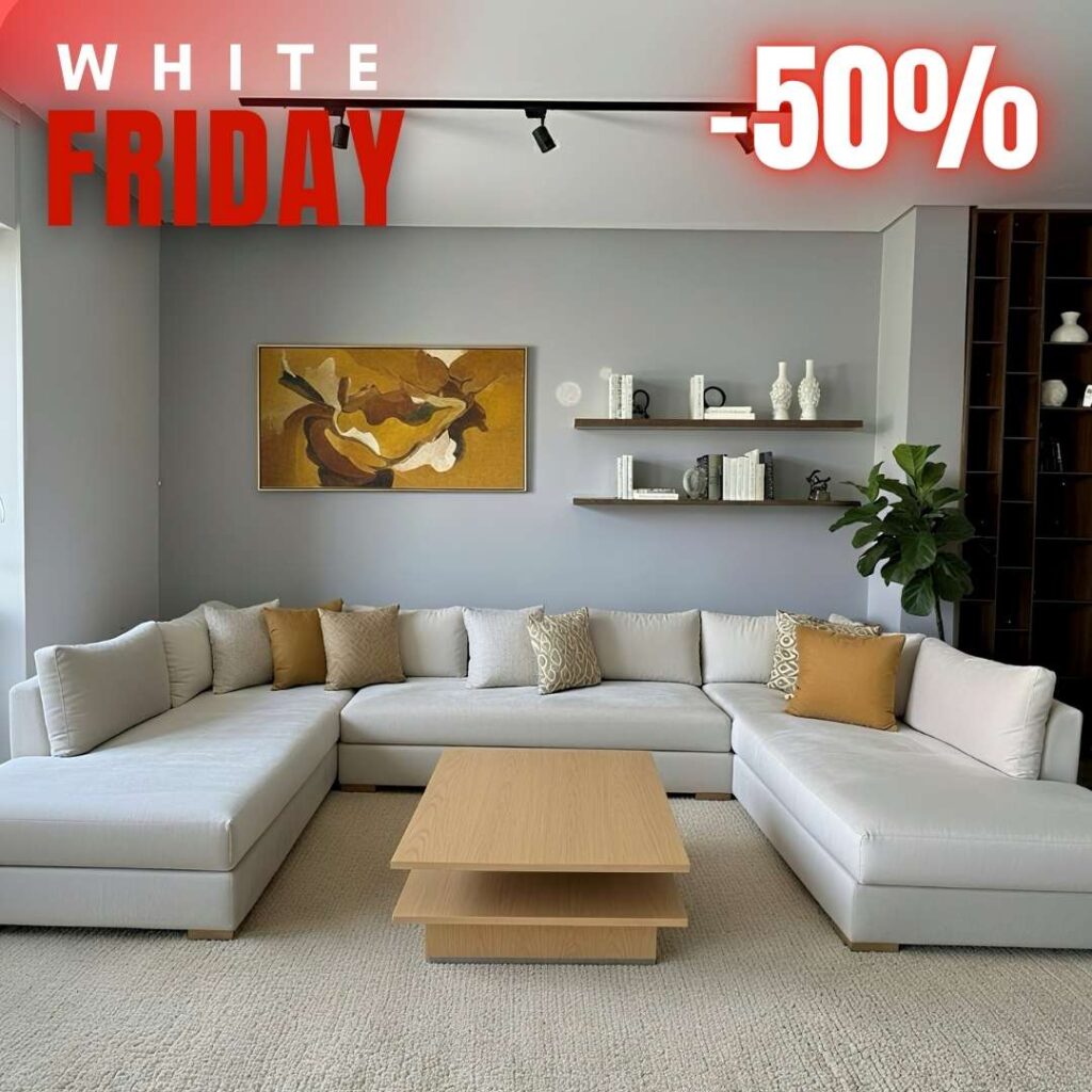 Salon au design moderne et confortable, avec lignes élégantes et matériaux premium. Profitez du White Friday pour l’obtenir à un prix exceptionnel.
